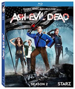 Cast: Bruce Campbell, Ray Santiago, Dana DeLorenzo, Jill Marie Jones, Lucy Lawless, Michelle Hurd, Ted Raimi, Pepi Sonuga, Lee Majors, Joel TobekDirector: Sam RaimiMPAA Rating: Video Not Rated, (TV-MA) contains bloody violence, language, nudity Genre: Horror, ComedyRunning Time: 288 minutes (10 episodes) Video Release Date: August 22, 2017Original Starz TV Release Dates: October 2 thru December 1, 2016Language: EnglishReviewed Format: Blu-ray (also available on DVD)Audio: English Dolby Digital True HD 7.1 (changeable to Spanish and French)Video: Widescreen 1080p, Aspect ratio 1.78:1Subtitles: English SDH, Spanish, FrenchNumber of Discs: Blu-ray 2 DiscsDistributed by: Lionsgate Home Entertainment
