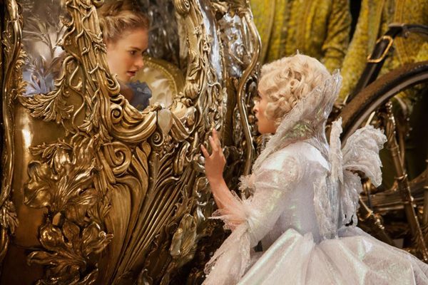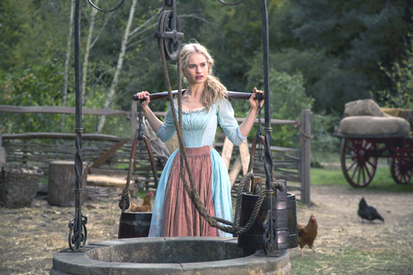 The film’s introduction shows Ella as a child as she finds that her mother is gravely ill. On her death bed she tells Ella that she should always be kind and have courage. Ella’s father raises her into late teens (Lily James), but missing the love he once had from her mother decides to wed the newly widowed Lady Tremaine (Cate Blanchett). With her two daughters Anastasia (Holliday Grainger) and Drisella (Sophie McShera), Lady Tremaine moves into the huge house. After some time Ella’s father goes to sea and never returns, thus setting up Ella’s new stepmother as her guardian.