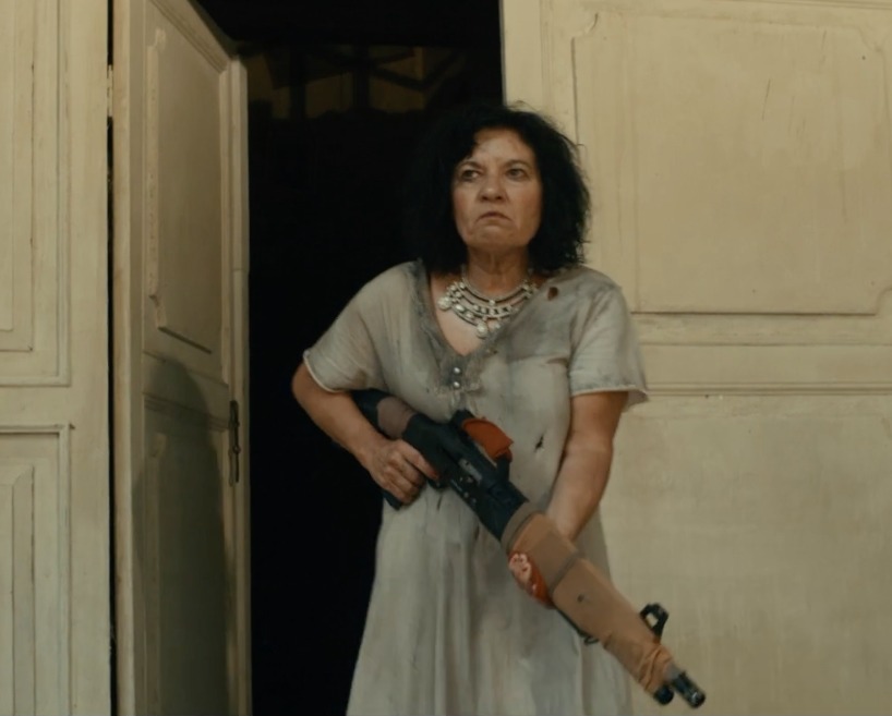 Stumbling into an abandoned town, our pirates discover Çavus’un Karisi (Özay Fecht), the wife of a military officer who has committed suicide. She protects the pirates with an automatic weapon, keeping Kemal and his corporate lackeys at bay. In a final battle where all seems lost, Peri must draw on her wit and courage if she hopes to survive.