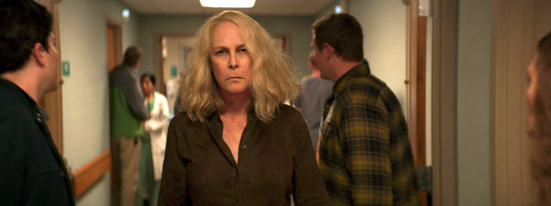 is being rushed to the hospital along with her daughter Karen Strode Pierce (Judy Greer) and granddaughter Allyson Pierce (Andi Matichak). It’s the same hospital where Frank Hawkins is recovering from his wound. Haddonfield has been under assault by Meyers and the town’s people are in fear of being his next victim. Director David Gordon Green puts the evil story into overdrive with deaths every few minutes. While most of the many kills being committed are similar to those shown in previous chapters of the Halloween franchise, it never gets old seeing the terror coming from the eyes of the masked stone-faced killer.
