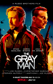 THE GRAY MAN The Gray Man is CIA operative Court Gentry (Ryan Gosling), aka, Sierra Six. Plucked from a federal penitentiary and recruited by his handler, Donald Fitzroy (Billy Bob Thornton), Gentry was once a highly-skilled, Agency-sanctioned merchant of death. But now the tables have turned and Six is the target, hunted across the globe by Lloyd Hansen (Chris Evans), a former cohort at the CIA, who will stop at nothing to take him out. Agent Dani Miranda (Ana de Armas) has his back. He’ll need it.