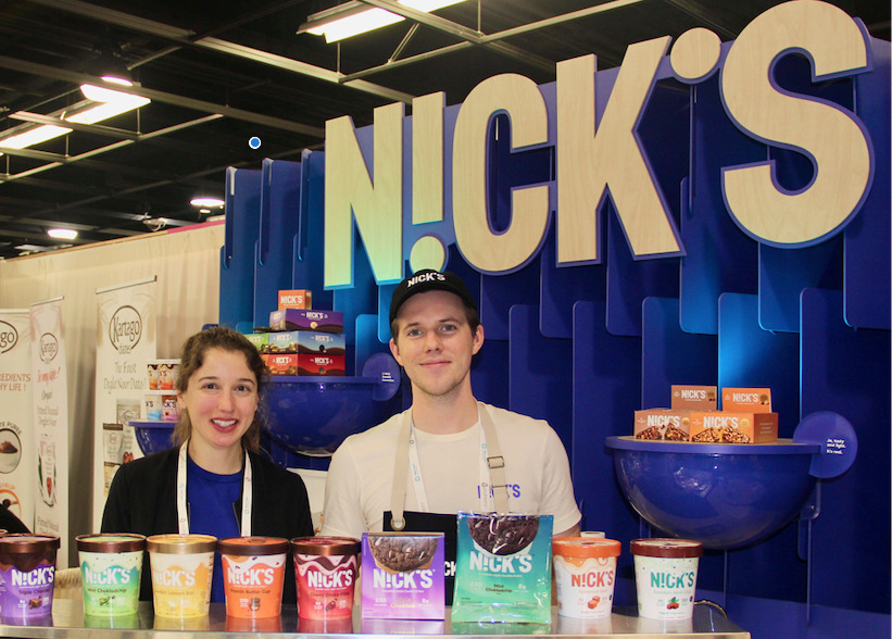 Megan and Kyle showcasing Nick’s Keto-friendly Light Ice Cream & Ice-Cream Sandwiches with no added sugars.