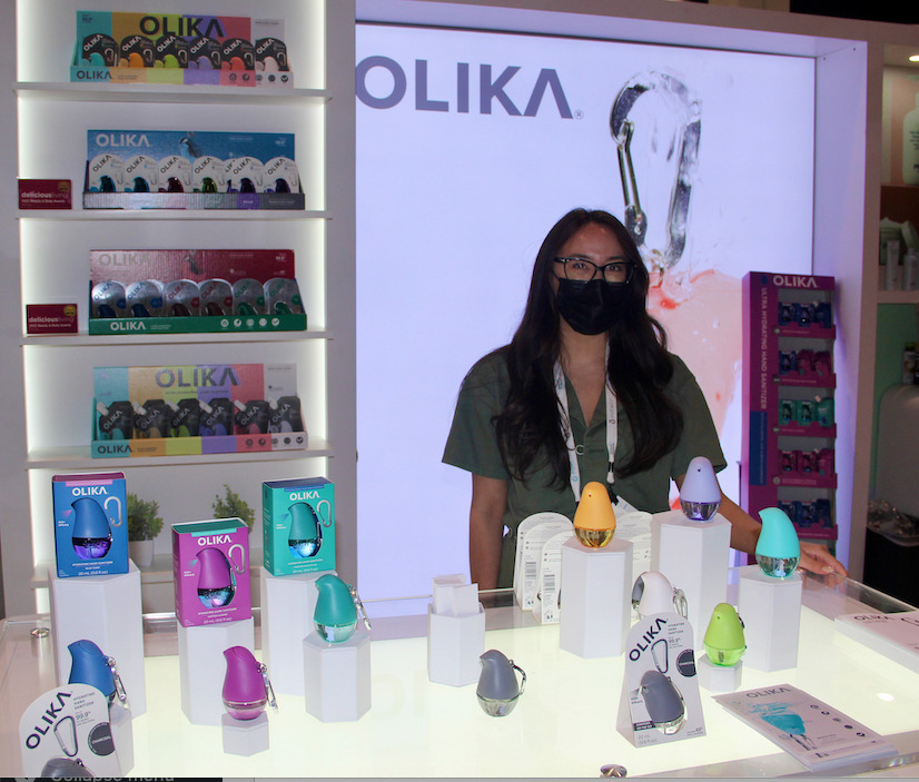 Marissa showcasing OLIKA Ultra-Hydrating Hand Sanitizers, which are effective against 99.9% of germs and provide 24-hour hydration with hyaluronic acid.