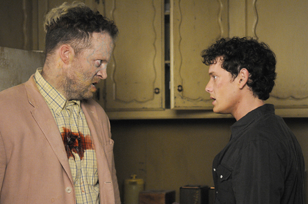 While Oddie only gets called that by Stormy (Addison Timlin) his current and childhood sweetheart, it’s more fun to tell the story using the nickname. The two are inseparable and spend every moment they can together after she gets off work at the mall ice cream shop. Both are loved by the community, although most think he fits his name, Odd. On one particular day Oddie sees the Botachs multiplying and then gets a vision of the future where a group wearing bowling shirts gets gunned down.