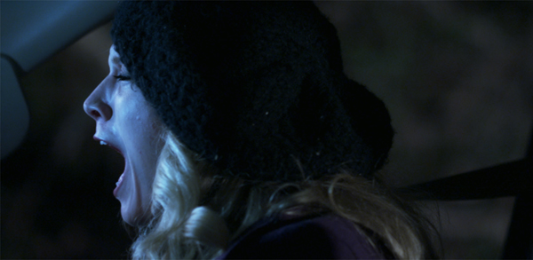 A couple in their twenties, Dan (Ace Marrero) and his pregnant wife Mindy (Katie Stegeman), are driving to a backwoods Christmas gathering at Dan’s sister’s house. On a two lane road a pick-up truck swerves back and forth across lanes making it hard to pass. When Dan tries to go around the truck at one point an oncoming car nearly forces him off the road. Upset, but nothing they can do as the truck speeds away, they get back to their trip. After refueling and making a remark to the truck driver who had pulled in for gas, Dan resumes their trip, now getting dark and snow starting to fall.