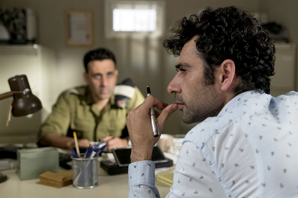 After work, Salam must travel across the checkpoint to Jerusalem where he lives. At the checkpoint he’s brought before Captain Assi Tzur (Yaniv Biton) the Israeli commanding border officer. After finding out that Salam is writing the scripts of “Tel Aviv on Fire” he gives him advice on how the Israeli General should react. But, in order to easily cross over to Jerusalem he must make changes in the script so the Israeli General Yehuda Edelman becomes the hero. So beings a pact between Salam and Assi with the Captain taking control of the production from afar.